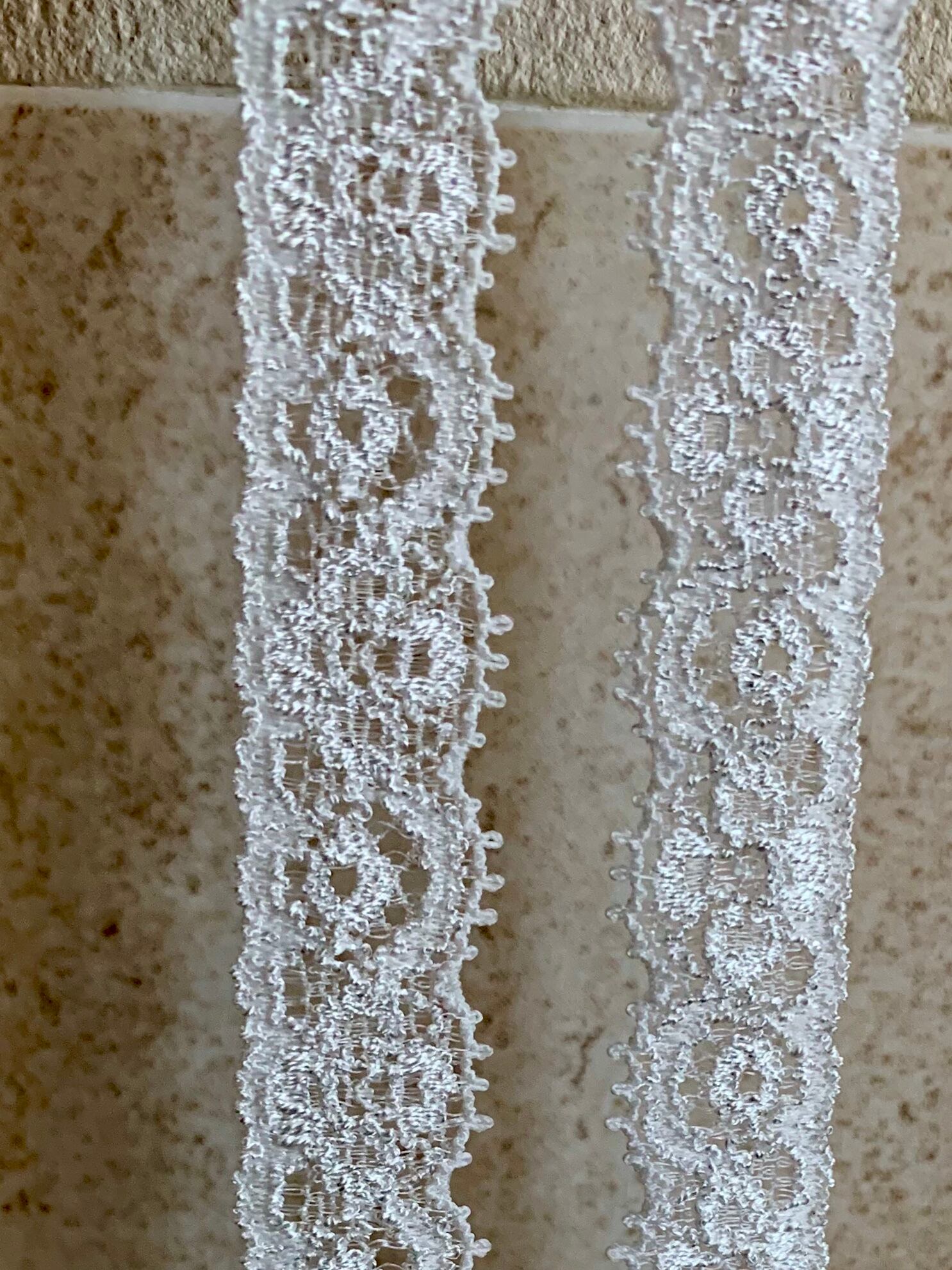 オフホワイト幅15ミリのストレッチ細巾レース【3mカット】です。