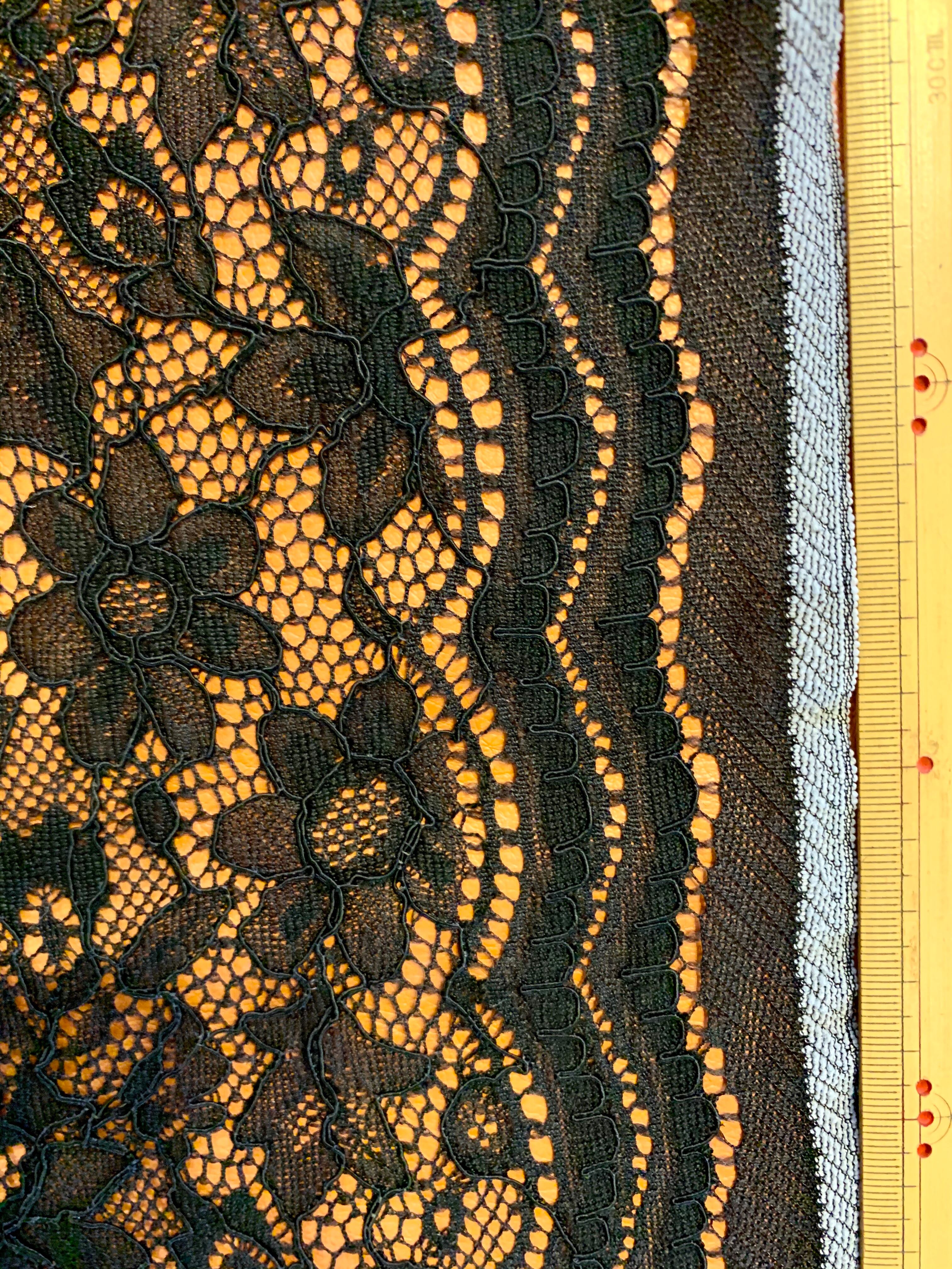 コードレースは独特の凹凸感による表情で、大変人気のあるレースです。レーヨンコードは20/5本芯を使用しています。ウチの黒のコードレースは全て黒芯コードを使用していますので、裁断面が白く見える事はございません。