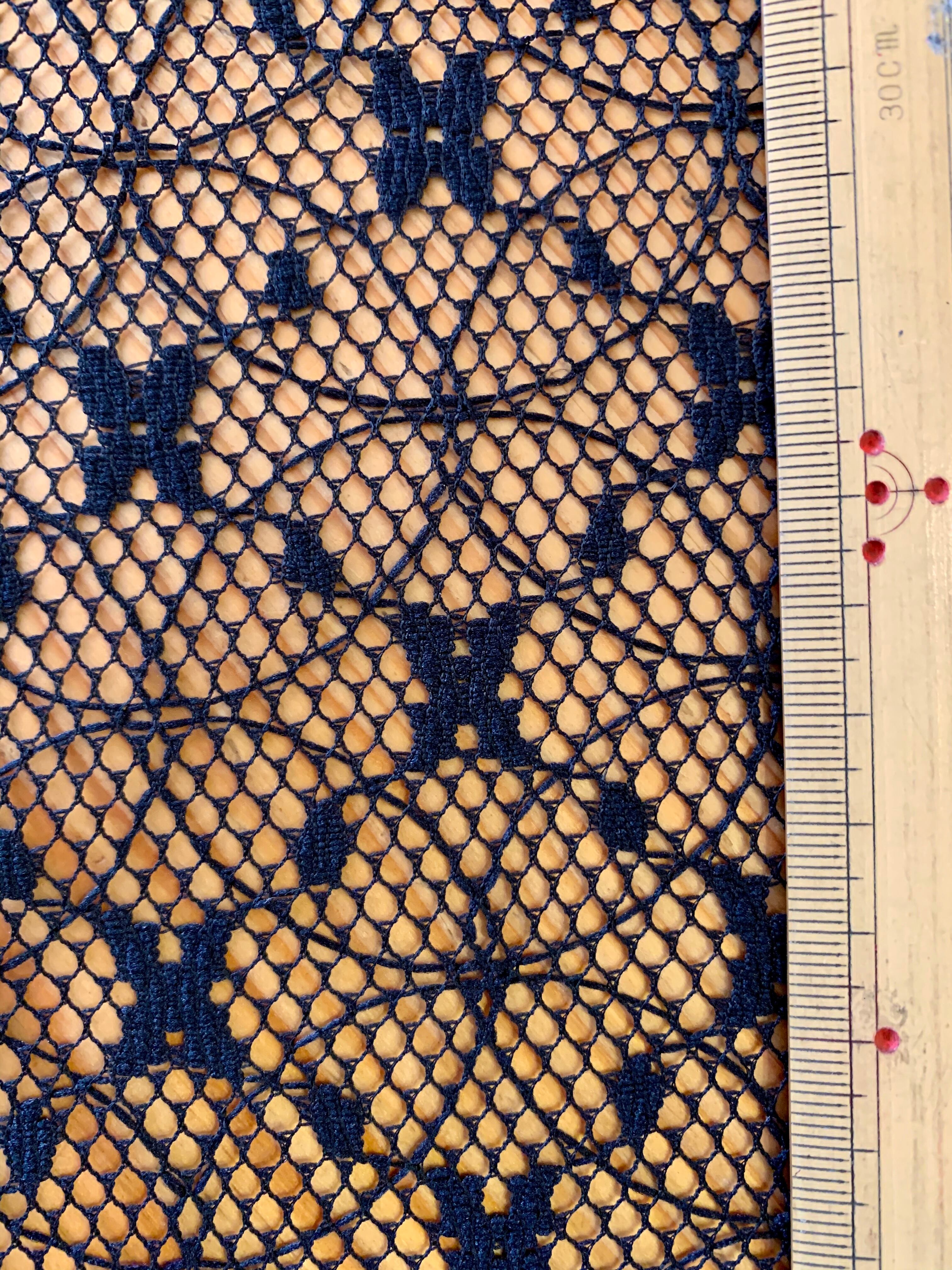 透け感のある小花とサークル柄の洗えるレース【黒】