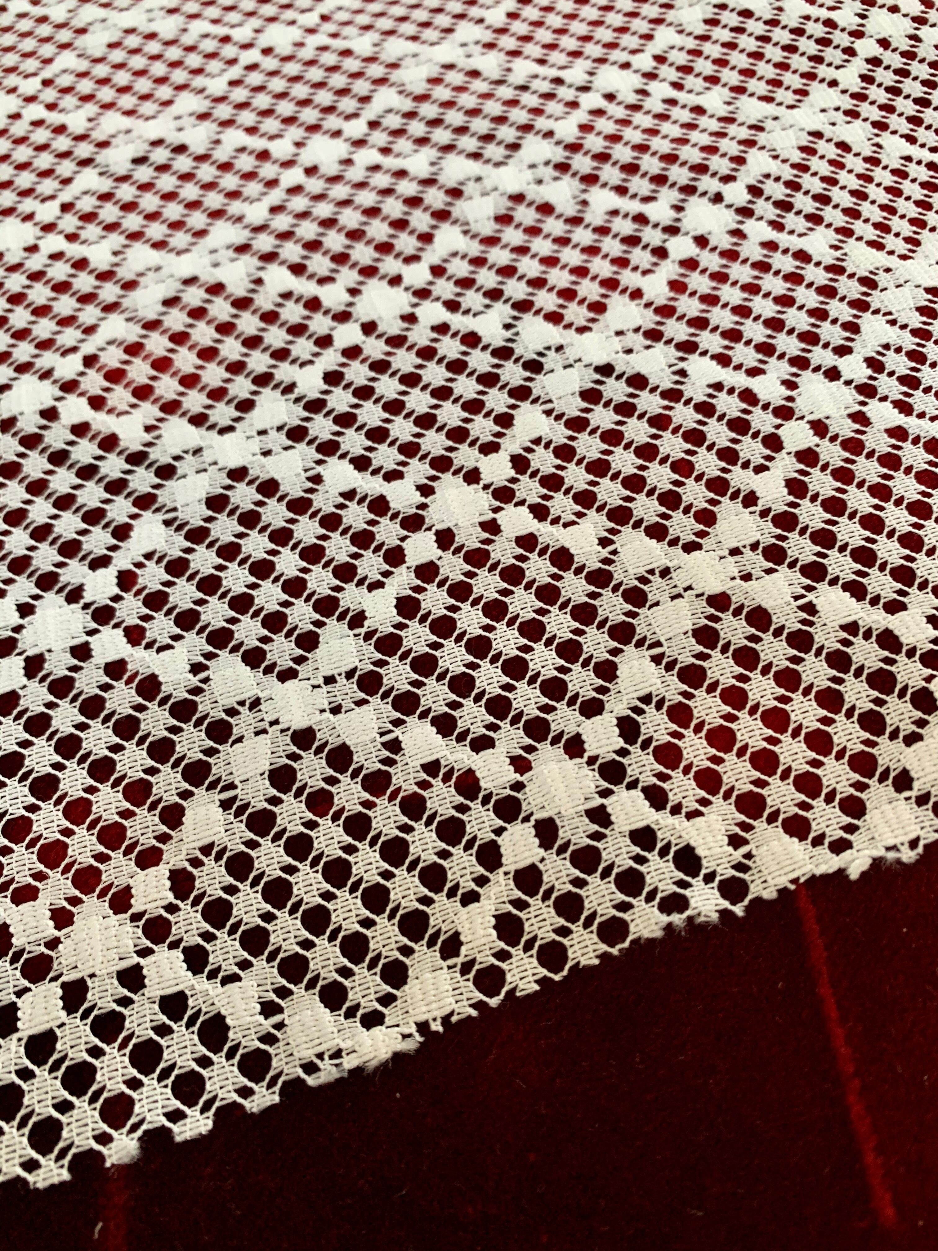 ダイヤ柄の洗えるポリエステルレース【白】